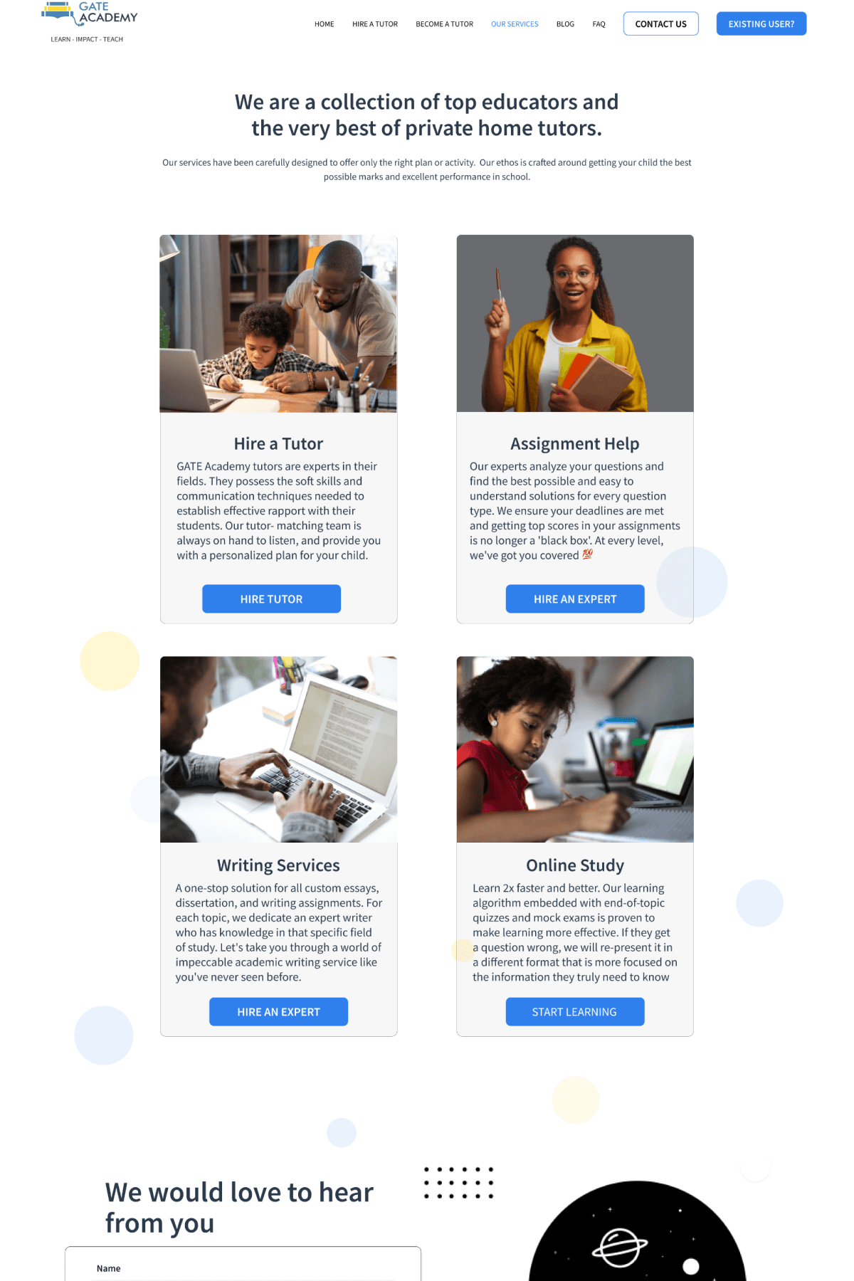 Parents and tutors shared highly favorable reviews, as they effortlessly browsed the website and found their way quickly.