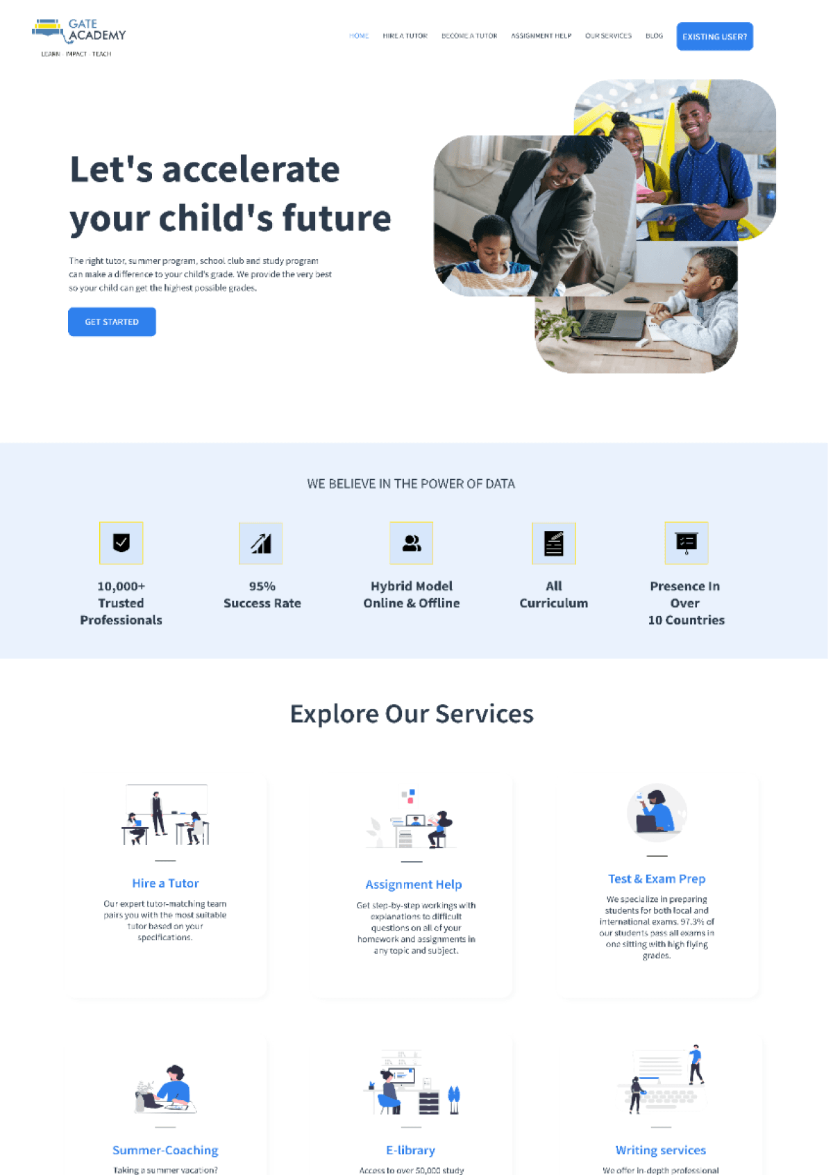 Parents aim to provide their kids with the finest education by signing them up for extracurricular classes. GATE Academy is an online platform designed for K-12 tutoring and e-learning, connecting pupils with skilled tutors across various subjects. It's equipped with tools and resources to support teaching, including an e-library, hybrid functions, digital classrooms, class scheduling, and more.